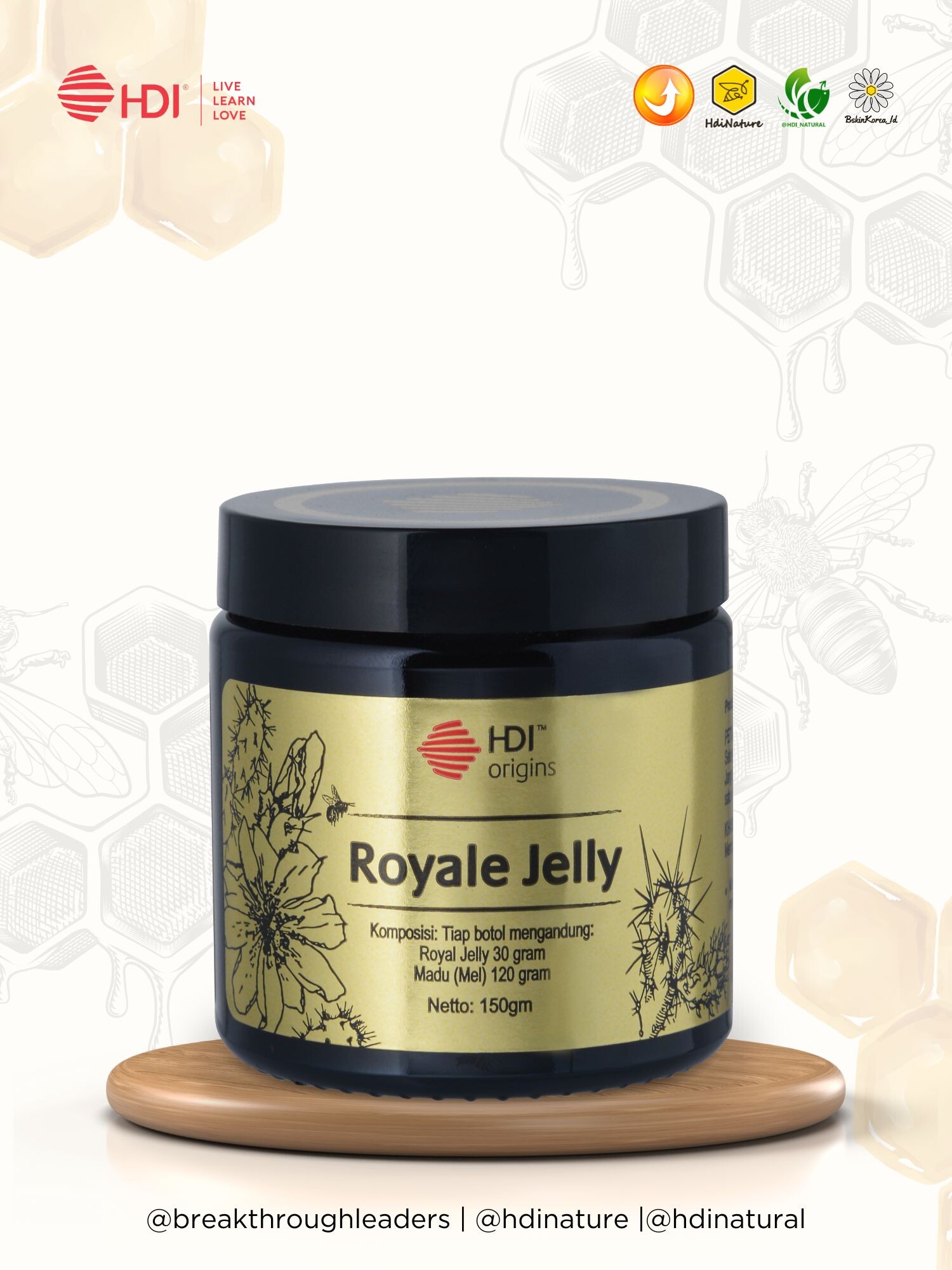 ● HDI Origins™ Royal Jelly Tablet yang dipanen dan diproses dalam waktu tidak lebih dari 24 jam, kemudian dikeringkan melalui metode freeze-dried sehingga kandungan nutrisinya tetap terjaga maksimal. Produk ini juga mengandung bee pollen dan bee propolis yang akan memberikan manfaat ekstra bagi kesehatan Anda. Tersedia dalam botol isi 60 tablet yang setiap tabletnya terdiri dari 150 mg royal jelly murni.
